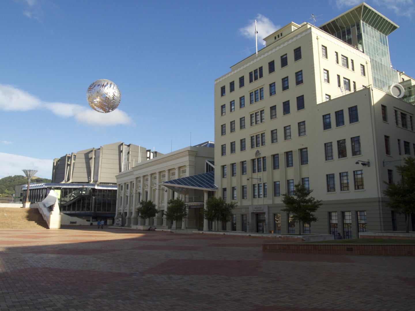 Council building and Michael Fowler Centre January 24, 2013 1440 × 1080 No life in Civic Square, Wellington Council building and Michael Fowler Centre