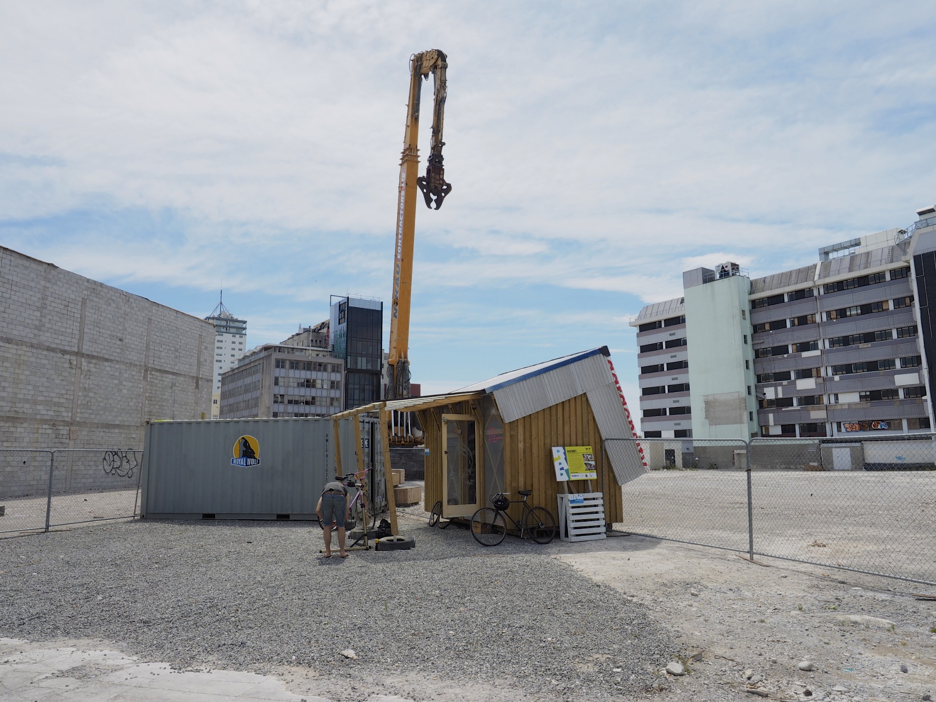 A mostly empty lot with a temporary bike shop on it January 22, 2014 1920 × 1440 Earthquake tourism in Christchurch An empty lot and a temporary bike shop